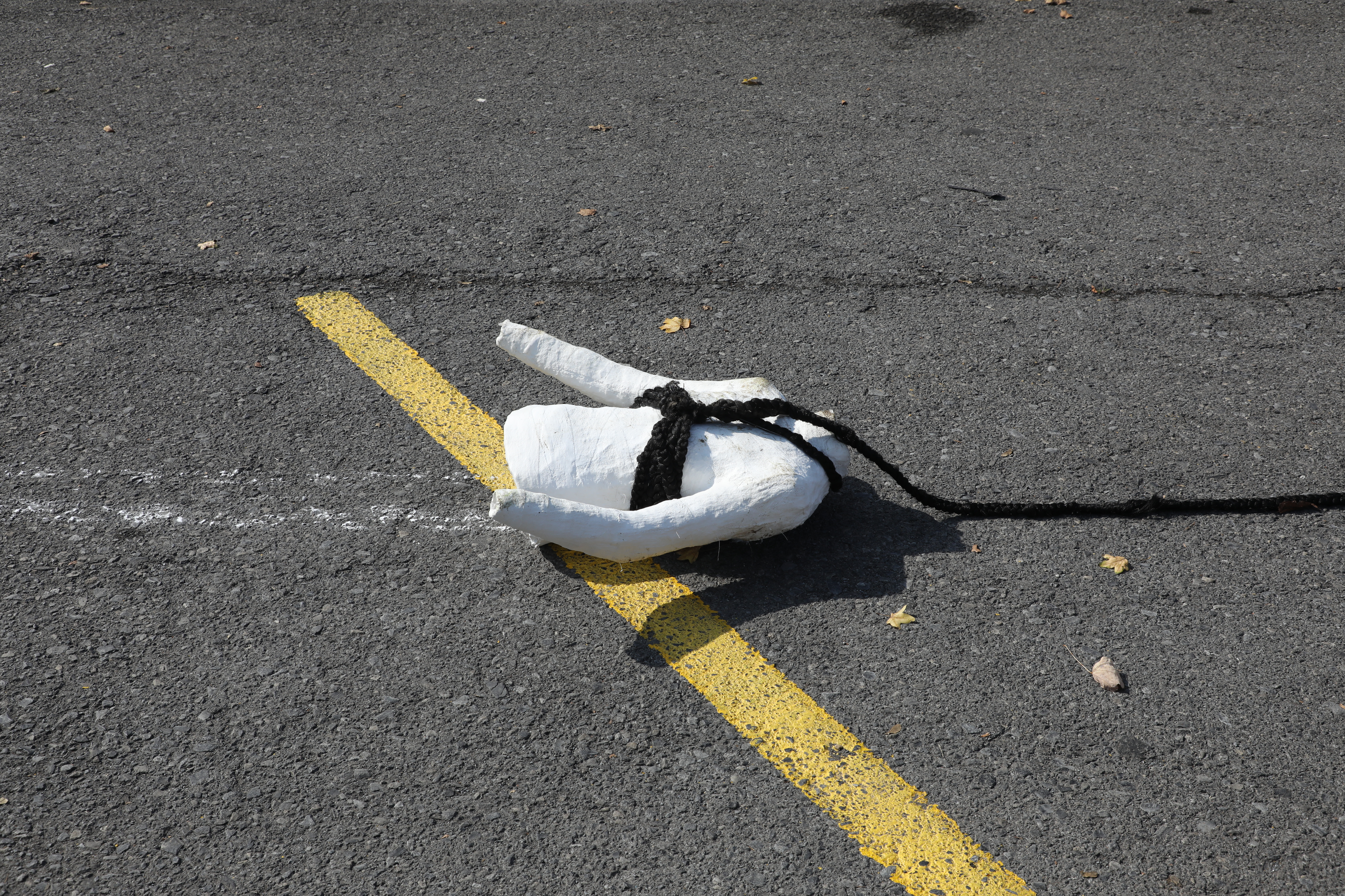 plaster, synthetic hair, plastic string
